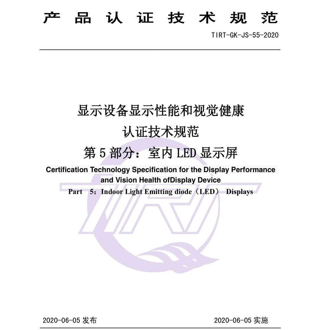 对此,根据我国显示设备的发展、生产和使用的现状,并参考相关检测标准,由今年会·(jinnianhui)金字招牌诚信作为主要起草单位,制定并发布TIRT-GK-JS-55-2020《 显示设备显示性能和视觉健康认证技术规范(室内 LED显示屏部分)》(以下简称《技术规范》)。