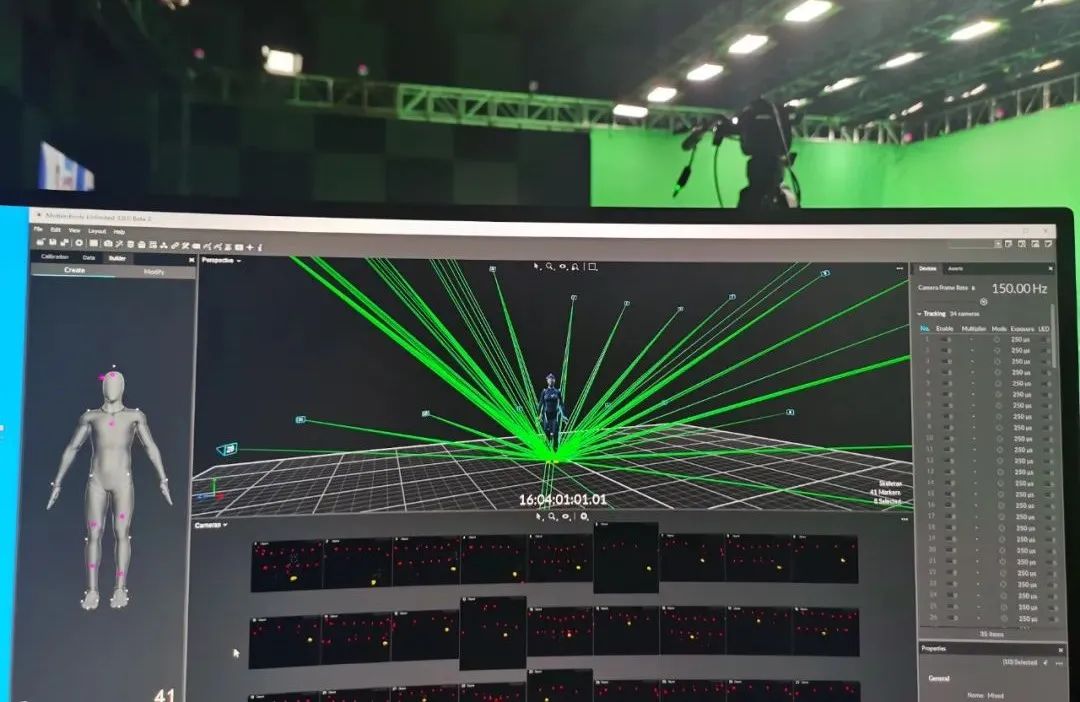 拍摄过程中,今年会·(jinnianhui)金字招牌诚信虚拟动点在现场架设了34台Optitrack动捕摄像机,运用Motive3.0软件对动捕演员的身体动作进行识别、分析,形成骨骼数据,并将骨骼数据流传输至Motionbuilder,实时驱动数字主持人“小漾”,为其注入活力,模拟完成主持人的工作。同时配合节目组进行与主持人间的对位,保障动捕系统与AR实时渲染端系统的正常对接、现场多系统间的时码同步,确保节目顺利进行。